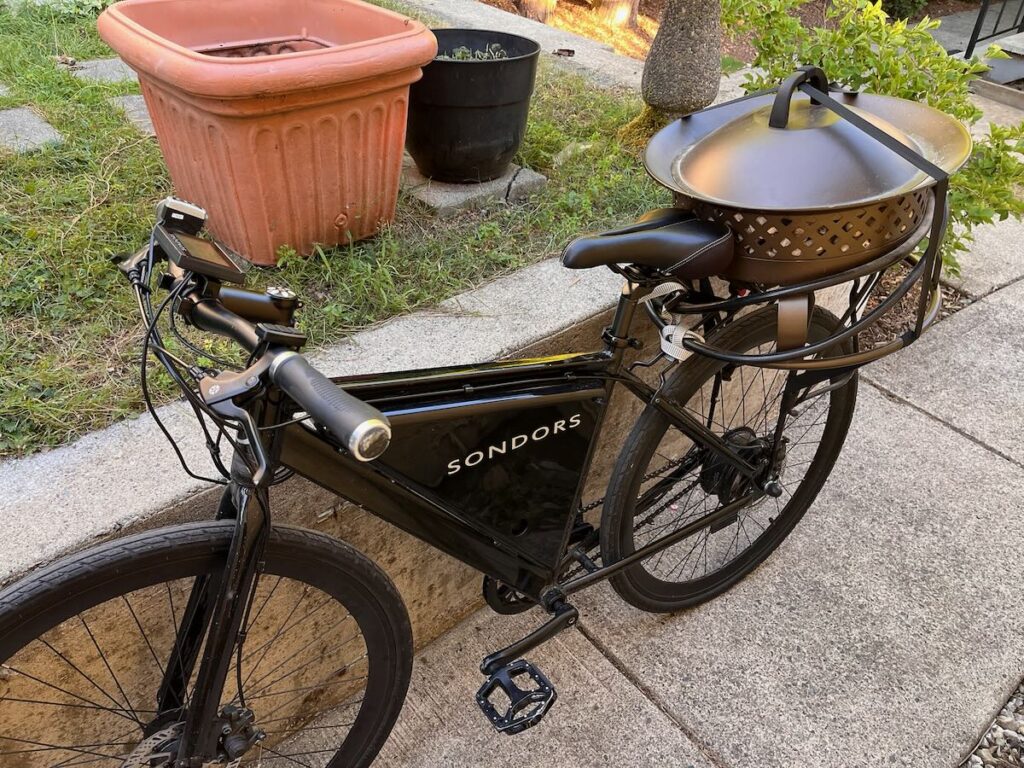 I’m not one to be easily bested by a problem. In this case a friend was having a little summer hang out and asked if I could bring my fire pit. I was planning to bike, so this was the solution …